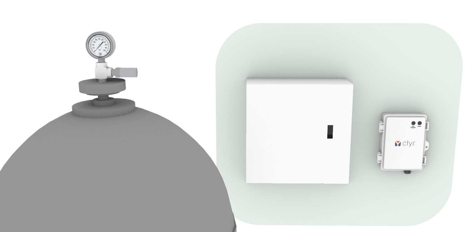 <figure><img src="https://1838281737-files.gitbook.io/~/files/v0/b/gitbook-x-prod.appspot.com/o/spaces%2FCgJ72dWivGOMwepBymYy%2Fuploads%2FY4kanQX0PfQkoGF1MIH6%2FPressure_Sensor.png?alt=media&#x26;token=4ac8bb14-44da-4900-821e-c16e7589cae3" alt=""><figcaption><p>Clyr Pressure Sensor mounted below the analog pressure gauge</p></figcaption></figure>